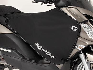 Hřejivá deka na nohy vám umožní prodloužit si skútrovou sezónu i o chladné měsíce. Deka je vyvedena přesně na míru z kvalitních materiálů včetně loga modelu.