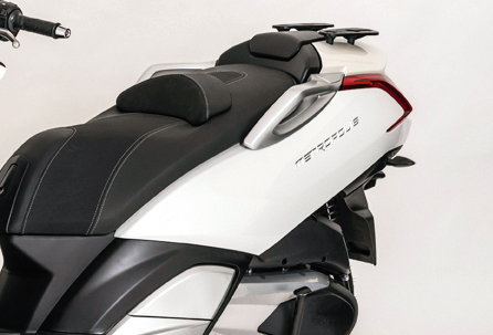 Zadní nosič se nejlépe hodí k originálnímu kufru o objemu 47 l, který můžete mít jak v základní černé barvě, tak s lakovaným krytem v barvě skútru.