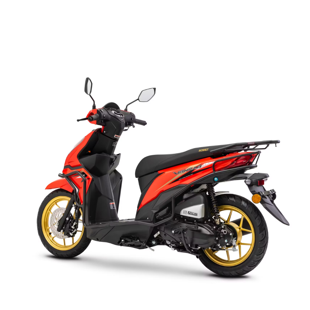 ROMET Vanilla upoutá pozornost svým elegantním vzhledem. Štíhlá silueta je zdůrazněna dynamickými liniemi a pečlivě zvolenými barvami, které splývají s městským prostředím. Jeho kompaktní rozměry usnadňují a pohotují manévrování v přeplněných ulicích. Ergonomicky tvarované sedadlo zajišťuje pohodlí i při delších jízdách, zatímco prostorná opěrka nohou poskytuje jezdci stabilitu a komfort. Intuitivní uspořádání ovládacích prvků navíc umožňuje rychlé a snadné ovládání vozidla.